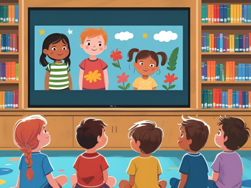 Børnebibliotekaren læser en historie højt og derefter skal vi se korte film sammen på bibliotekets storskærm. Temaet i dag er vinter.