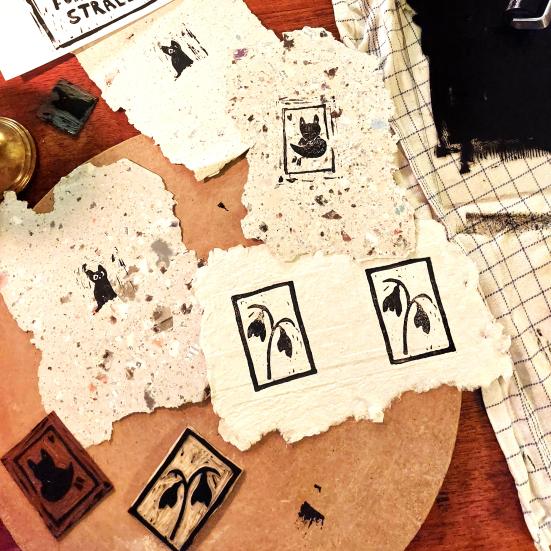 Klip i gamle bøger, lav linoleumstryk, collage, Art Diarys eller...