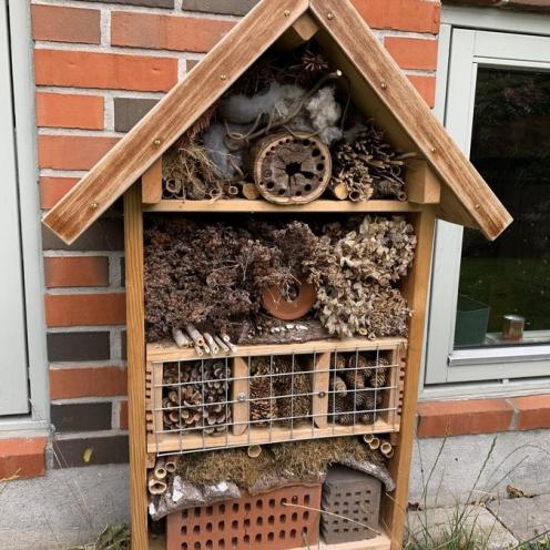 De har fået insekthoteller, som børn i området har været med til at fylde med kvas.