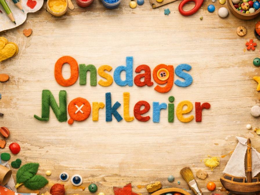 OnsdagsNørklerier ved kreabordet i børnebiblioteket er et tilbud til børn og deres voksne.